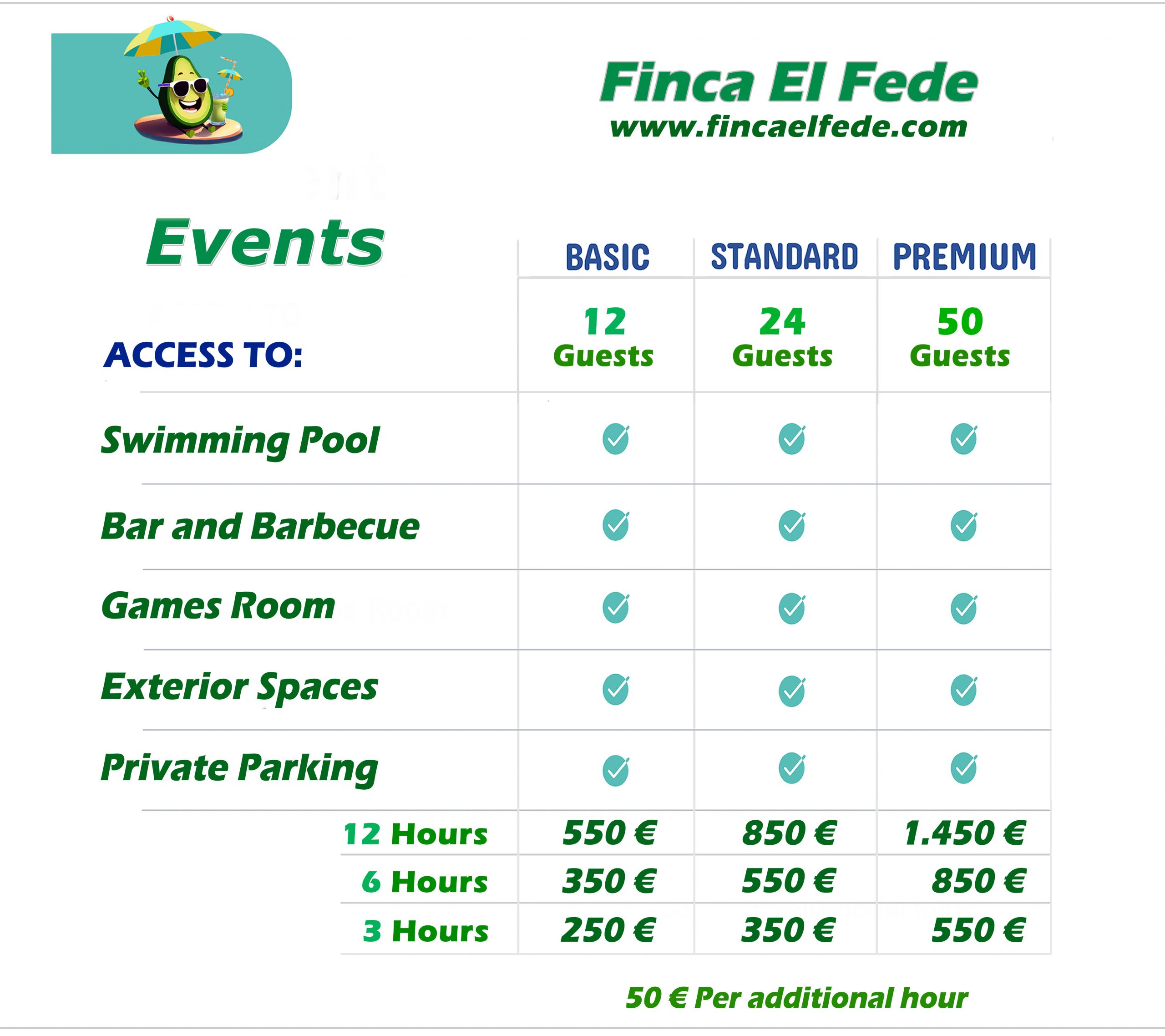 Capacity for (8-50) guests.